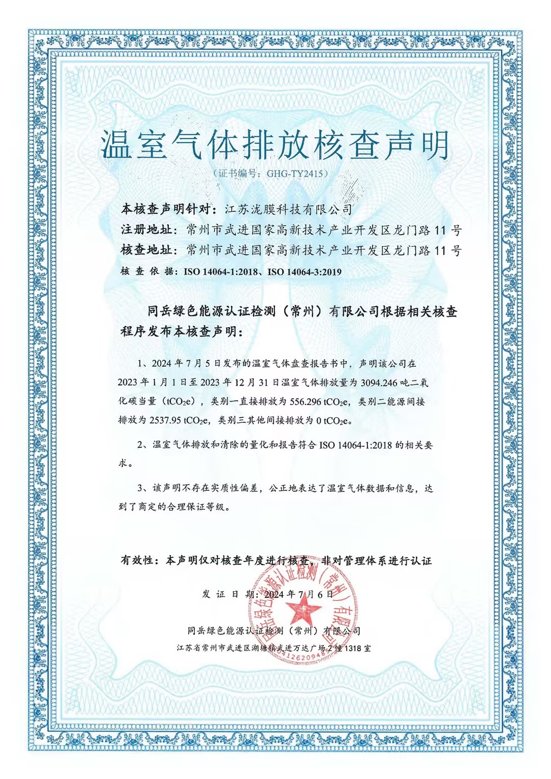 溫室氣體排放核查聲明